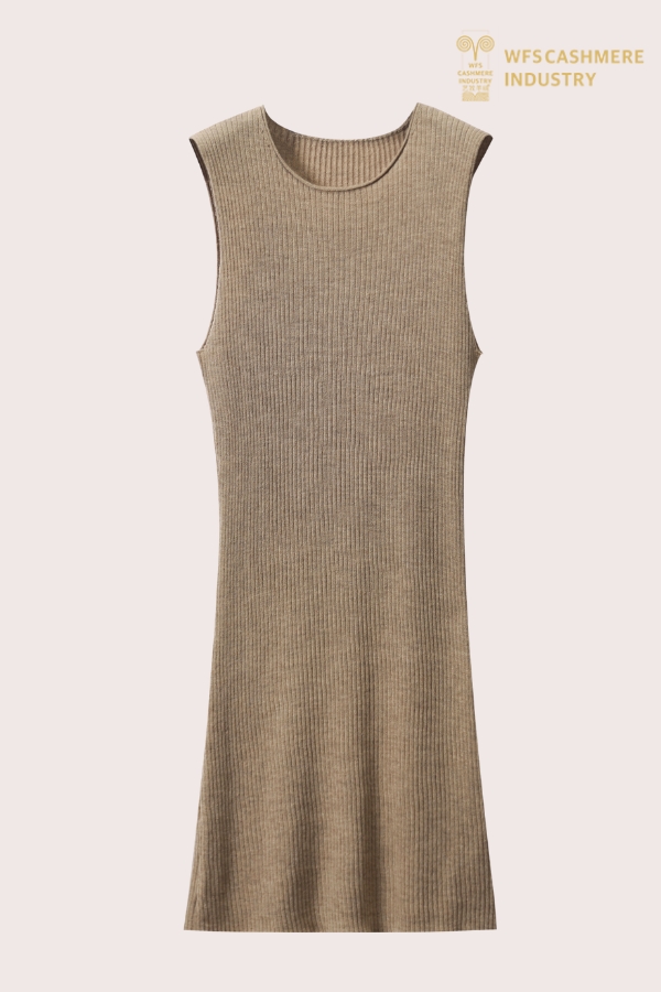 Introduce the ultimate versatile staple to your brand's collection with our Women's Sleeveless Crew Neck Dress. Expertly crafted by WFS Cashmere, a premier vertically integrated knitwear manufacturer, this dress embodies the essence of "Quiet Luxury." The clean, sleeveless design and classic crew neckline create a streamlined, flattering column silhouette. Knitted from premium cashmere or luxury blends, it serves as a breathable, chic standalone piece for warmer months and a perfect, bulk-free layering foundation under blazers, cardigans, or coats for fall and winter.